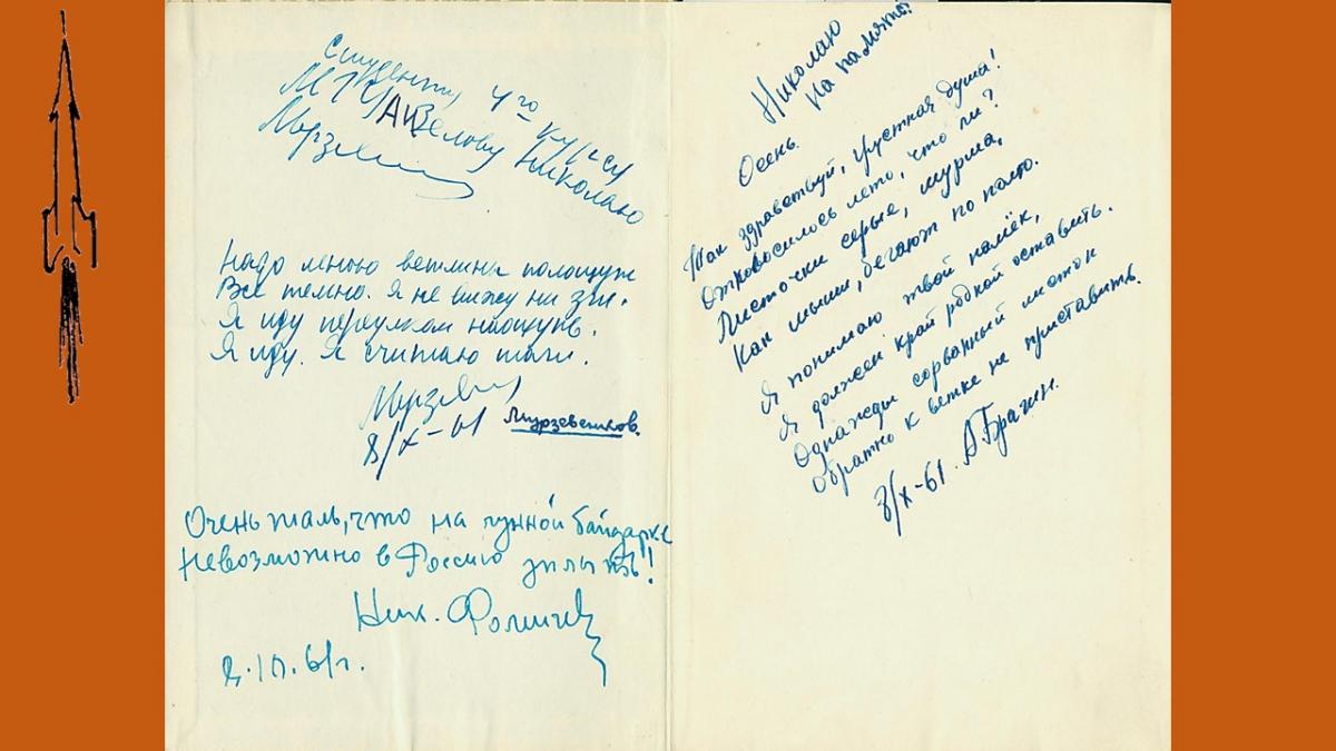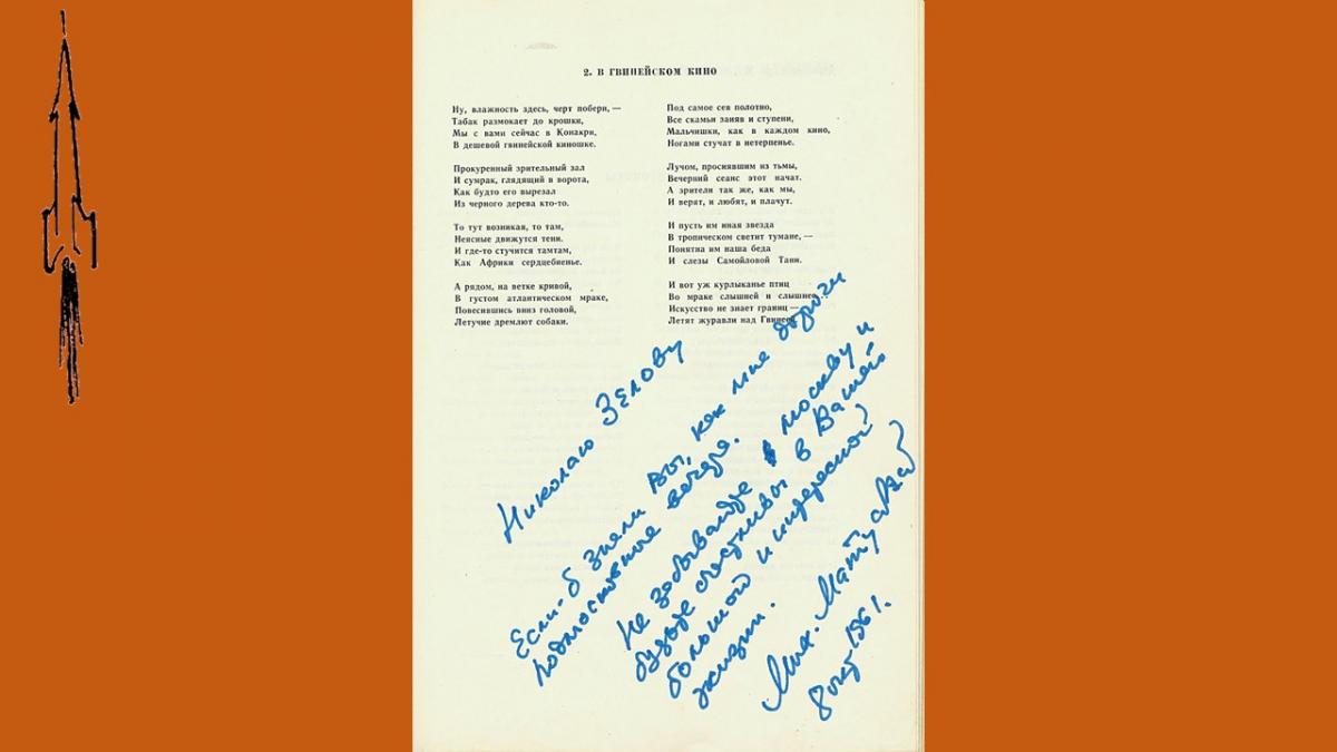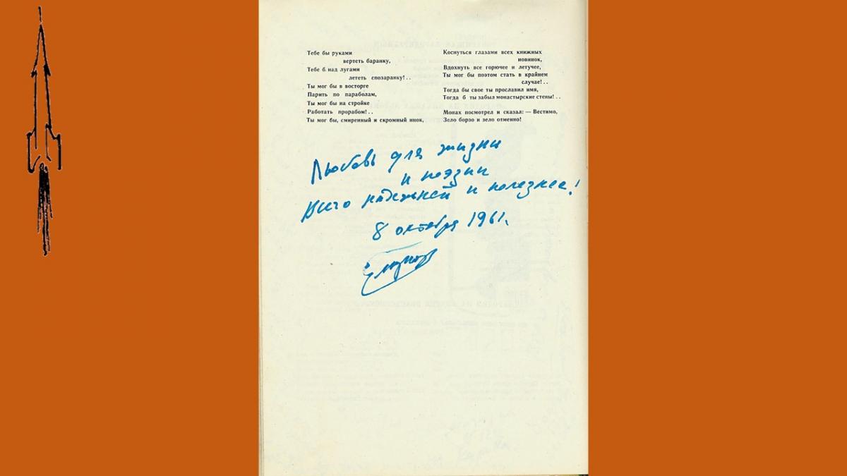 Датируются автографы 8 октября 1961 года: в этот день в Москве проходил очередной День поэзии. В первой половине 60-х годов поэзия была очень популярна. При большом стечении поэтов и почитателей их творчества Дни поэзии проходили не только в Москве и Ленинграде, но и во многих городах Советского Союза. Поэтические строки стихов-посвящений пронизаны оптимизмом, верой в будущее, особенным светом, теплом и искренностью, что было свойственно той эпохе.