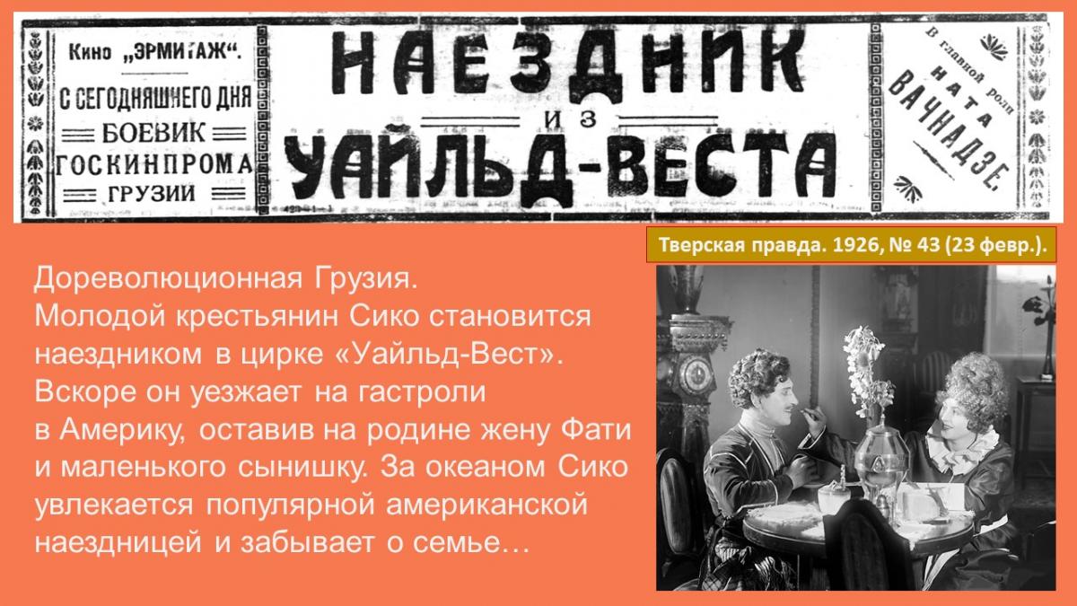Тверской публике фильм был показан в марте 1926 года в кинотеатре «Эрмитаж».