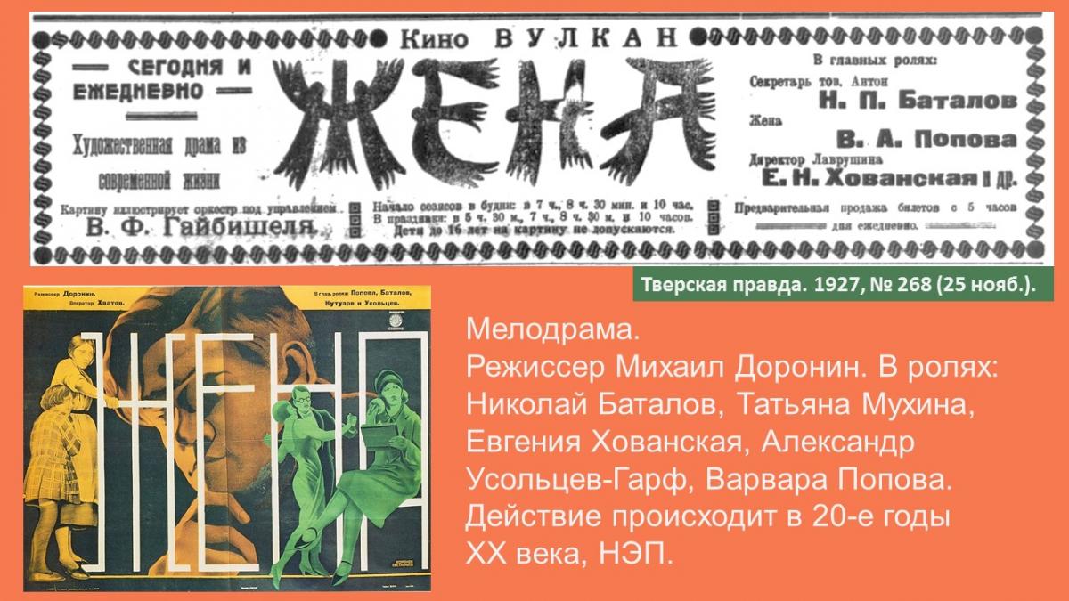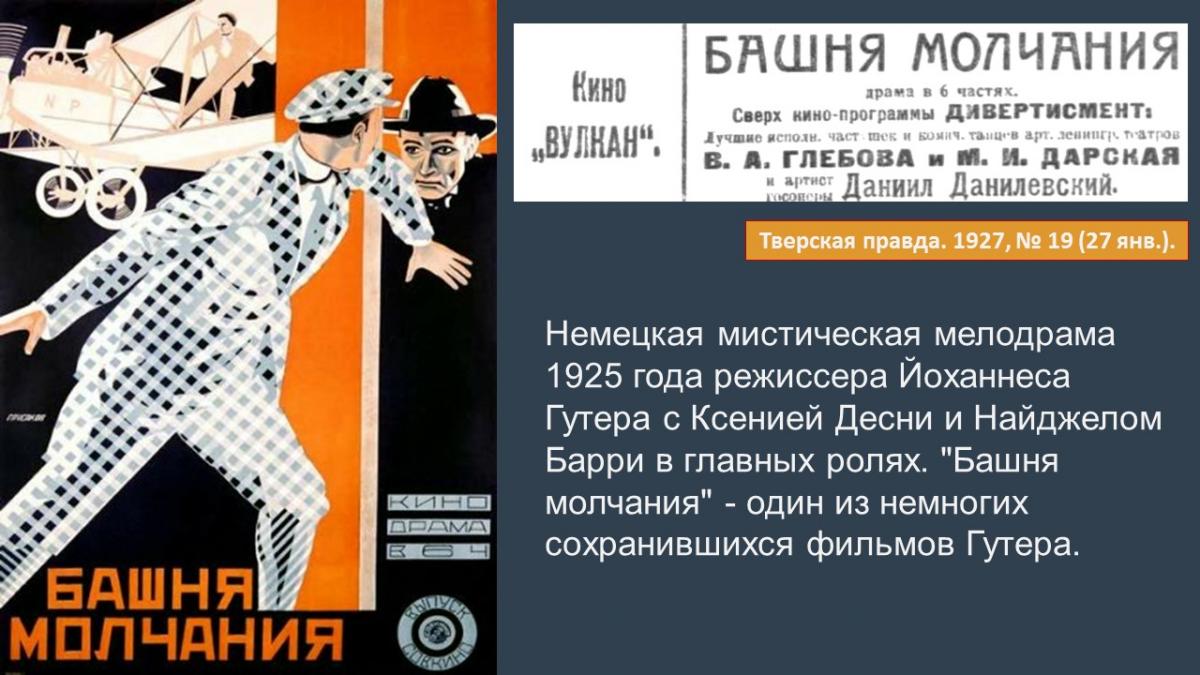 "Великий немой" в тверских кинотеатрах 20-х годов XX века