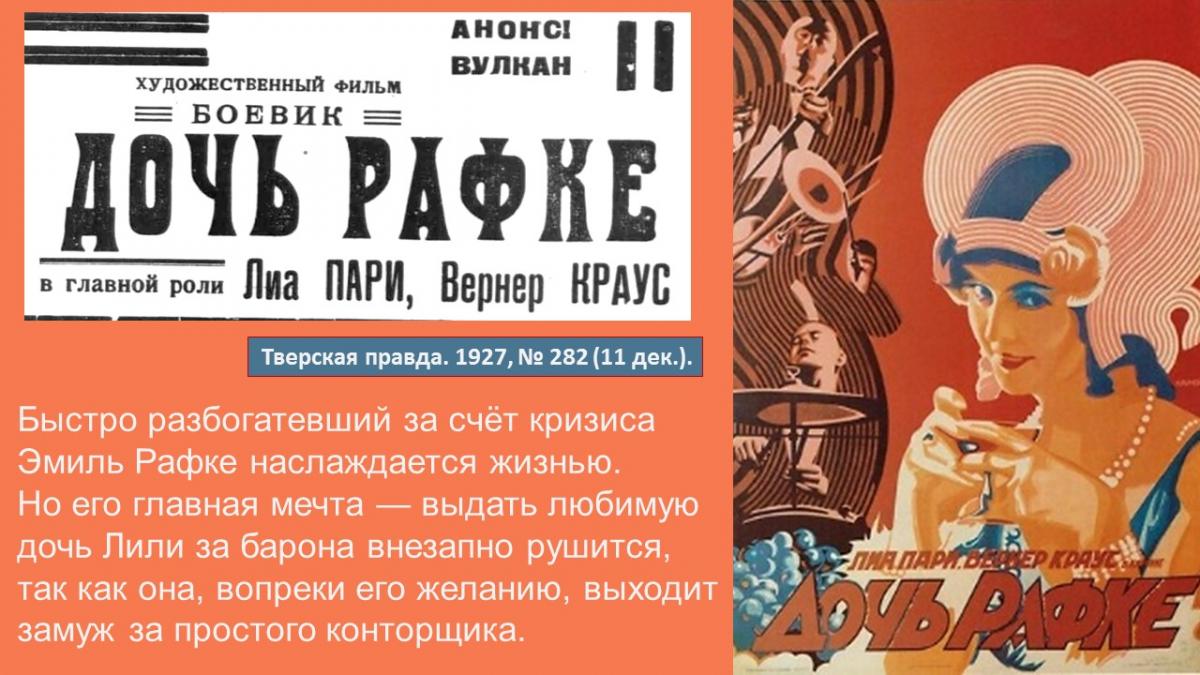 Тверской публике фильм был показан в феврале 1927 года в кинотеатре «Вулкан».
